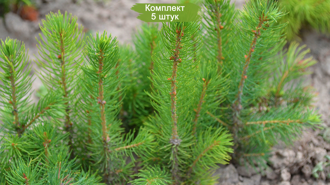 Набор из пяти саженцев Европейской ели размером до 20 см предлагается по привлекательной цене, эквивалентной стоимости четырех саженцев. Европейская ель, или Picea abies, тесно связана с такими видами как сибирская ель (Picea obovata), ситхинская ель (Picea sitchensis) и финская ель (Picea fennica), произрастающая в Норвегии и Финляндии. Финская разновидность отличается более компактными размерами и медленным ростом.
