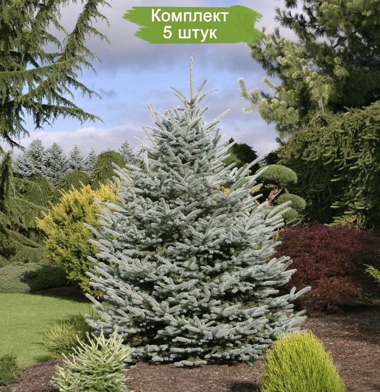 Комплект из пяти саженцев Ели Голубой Кейбаб (Kaibab) размером от 150 см по цене четырех - это отличное предложение! Ель Голубая Кейбаб является вечнозеленым растением. В молодом возрасте её крона неравномерная, но со временем она принимает широко-колоновидную форму с плотно собранными ветвями. Эти деревья могут достигать высоты от 1,5 до 2 метров и имеют диаметр кроны от 2 до 3 метров. Годовой прирост составляет около 8 см в высоту и 10 см в ширину. Хвоя у этой ели серебристо-голубого цвета, колючая и густая, с легким изгибом, длиной 10-12 мм и диаметром около 1 мм.