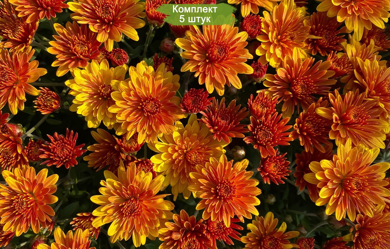 Саженцы хризантемы желто-оранжевой мультифлоры Яхо Оранж (Yahou Orange) - комплект 5 шт.