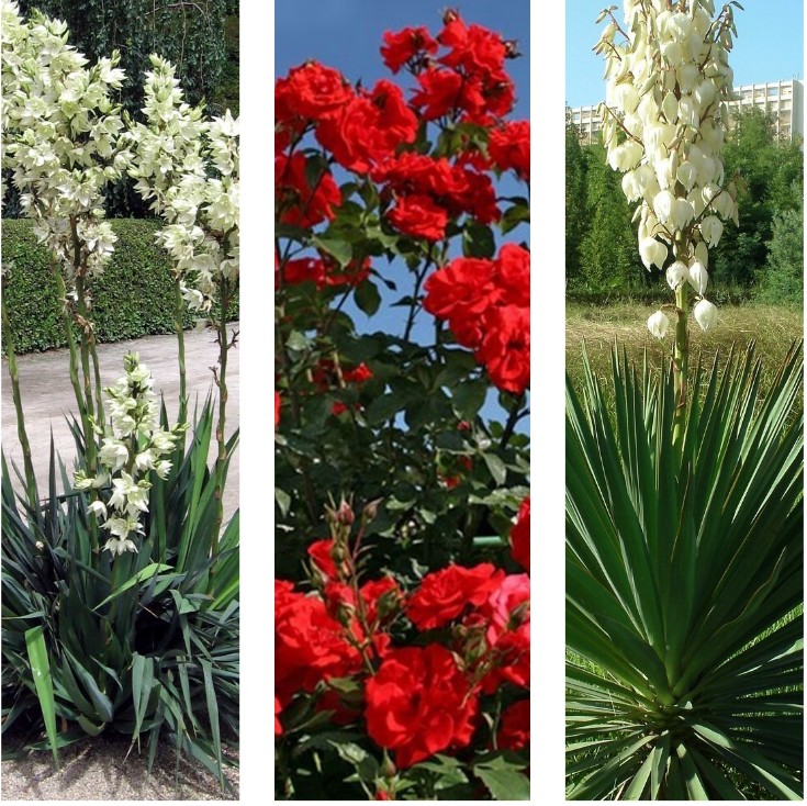 Комплект саженцев Елена (юкка Узколистная, юкка Повислая, Роза Кордес Брильянт (кустовая)