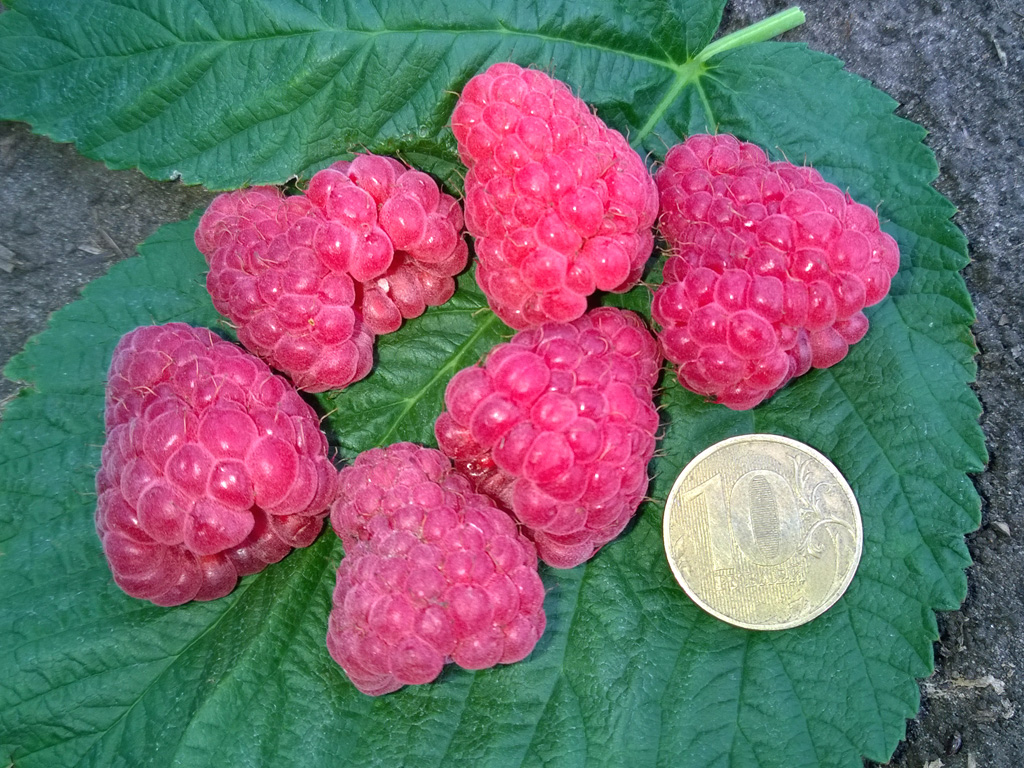 Взрослое растение достигает высоты 1,8 метра и имеет прямостоячий, полураскидистый куст. Двухгодичные стебли светло-коричневого цвета, а однолетние побеги пурпуровые и бесшипные, с восковым налетом. Листья среднего и крупного размера, светло-зеленые, слабо опушенные и слабо морщинистые. После распускания листва приобретает красно-коричневый оттенок. На прочных плодовых веточках формируется до 20 ягод, вес которых варьируется от 4 до 14 граммов. Плоды имеют усеченно-коническую форму, с плотно сцепленными мелкими костянками. Ягоды красного цвета с бархатистой поверхностью, обладают десертным вкусом и насыщенным малиновым ароматом. Они подходят как для свежего употребления, так и для различных видов переработки.