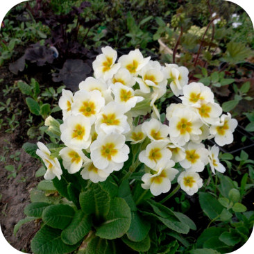 Примула Альба (Alba) – это многолетнее травянистое растение из семейства первоцветных. Оно отличается компактным ростом, достигая высоты всего 15-20 см. Листья примулы собраны в плотную розетку, а цветки, одиночные и белые или слегка желтоватые, имеют диаметр 2,5-3 см и появляются сразу после таяния снега. Примула обыкновенная быстро разрастается, образуя во время цветения пышную шапку из множества цветков.