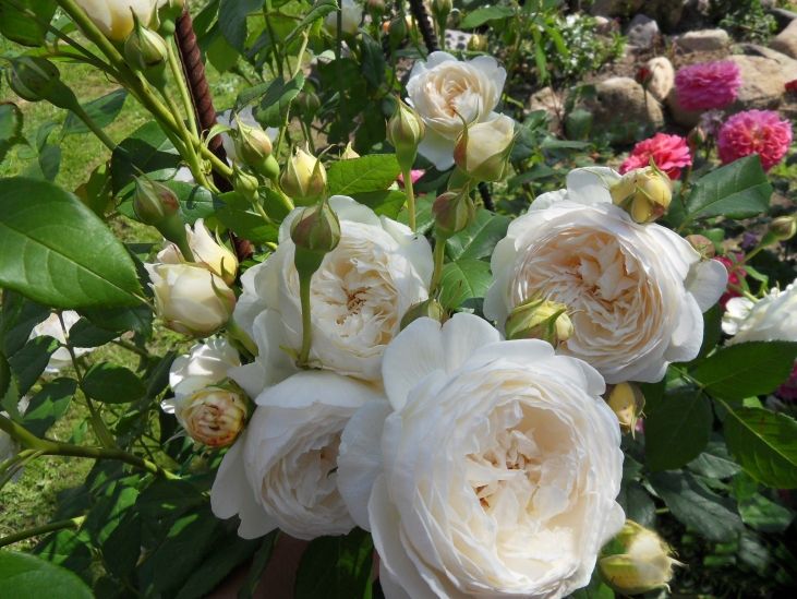 Парковая роза Клэр Остин (Claire Austin) отличается крупными кремово-белыми цветками, собранными в кисти по 3-5 штук. Цветы обладают насыщенным ароматом. Этот сорт розы демонстрирует хорошую устойчивость к заболеваниям. Куст достигает высоты 120-150 см и имеет дуговидно поникающие побеги. В зимний период побеги могут обмерзать, но весной они успешно отрастают. В условиях нашего климата сорт ведет себя как представитель группы флорибунда.