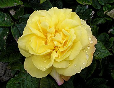 Саженец парковой розы Лихткёнигин Лючия (Lichtkonigin Lucia) продолжает завоевывать популярность, несмотря на то, что этот сорт был введен в продажу уже давно. Элегантные, удлиненные бутоны медленно раскрываются, напоминая чайно-гибридные розы. Цветки ярко-желтые, слегка чашевидные, с красными кончиками и золотистыми тычинками в центре. По мере раскрытия цветки меняют цвет от ярко-желтого до лимонного и кремового. Они собраны в кисти по 5-15 штук. Листва мелкая, блестящая и устойчивая к заболеваниям. Роза начинает цвести рано, первая волна цветения очень обильная, и куст продолжает цвести до самой осени. Это широкий ветвистый шраб, который также можно использовать как плетистую розу.
