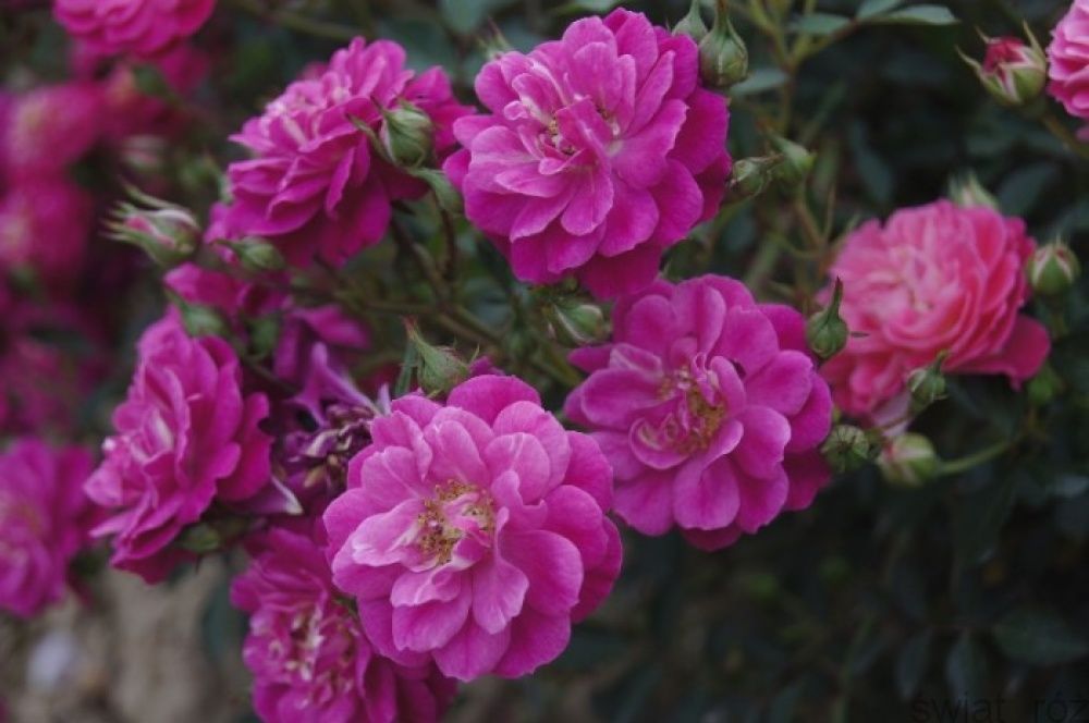 Роза "Сиреневый дождь" (Hedetraum) – это изумительный сорт, который отличается высокой устойчивостью к болезням и обильным цветением. Она может использоваться как плетистая, почвопокровная роза или небольшой шраб в бордерах. Цветение продолжается длительное время, одновременно образуются плоды. Цветки насыщенно-розовые, вначале почти малиновые, чашевидные, махровые, с небольшим белым глазком. Со временем они выгорают до розовых или сиренево-розовых оттенков, а лепестки аккуратно осыпаются. Цветки появляются в открытых кистях по 10-20 штук. Темная, блестящая листва невероятно устойчива к болезням.