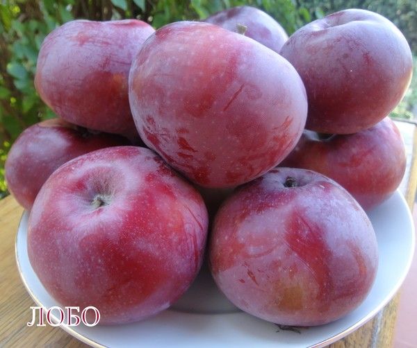 Яблоня сорта Лобо отличается высокой урожайностью, которая превышает средние показатели. Плодоносит ежегодно, рано вступает в период плодоношения и быстро увеличивает объем урожая, что делает её представителем интенсивных сортов. Плоды обладают великолепным десертным вкусом и ароматом. Они среднего размера, весом от 100 до 180 граммов, имеют плосковато-округлую форму. Полностью созревшие яблоки окрашены в темно-малиновый цвет и покрыты заметным восковым налетом. Мякоть очень нежная, почти белая, с кисло-сладким вкусом, который оценивается на 4,4-4,8 балла по пятибалльной шкале. Кожица яблок блестящая и тонкая, иногда с легкой сеточкой опробкования. Сбор плодов происходит в течение короткого периода, обычно с 25 сентября по 5 октября. Яблоки хорошо сохраняются (с октября по январь) и легко транспортируются.